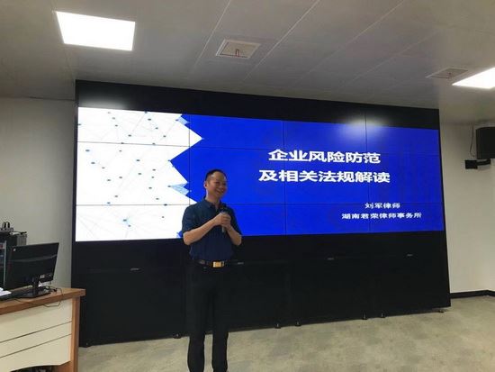 8月30日下午,我所党支部书记、创始合伙人刘军律师应邀为法律顾问服务单位湖南天辰餐饮管理有限公司开展法律服务宣讲。他以企业法律风险防范为主题,为公司高级管理人员、部门负责人及一线员工送去了一堂生动精彩的讲座。
