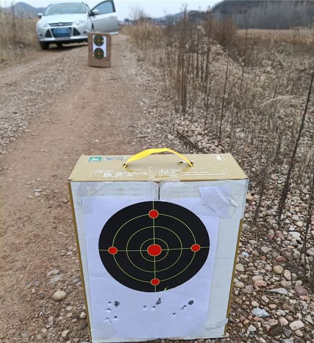 甘泉县公安局道镇派出所民警日常巡逻时发现在道镇南义沟村河边土路上停放一辆白色越野车,车辆后尾门开起,形迹可疑,上前对其进行检查。巡查至距离车辆30米处发现地上放着两个纸箱,上面粘有靶纸和数个孔洞。民警迅速来到车前,车上下来一男子神色慌张欲逃跑,民警迅速上前将男子摁在地上。