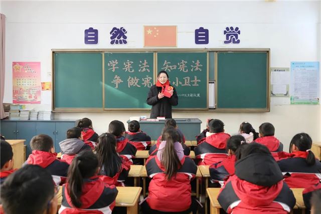 经济开发区法庭干警们还到洪泽区实验小学,为学生带来一场生动形象的主题宣传课。宪法作为我国的根本大法,是治国安邦的总章程,是党和人民意志的集中体现。通过此次主题宣传课,向中小学生宣传宪法精神,普及公民基本权利和义务等内容,培养学生法治思维、树立遵守宪法意识,引导学生维护宪法权威。