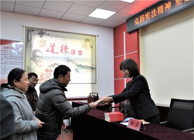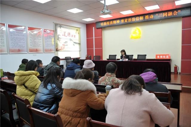 12月4日,民一庭庭长许霞到水渡口街道东郊社区,开展以“弘扬宪法精神,坚定法治信仰,推动‘三网融合’”为主题的宪法、民法典系列宣传活动,为40余名社区居民送上宪法宣传册和民法典书籍。许霞围绕“宪法的地位和维护宪法权威”、“审判机关的职能定位”、与宪法有关的案例、民法典部分条款解读等多方面内容,宣传在新时代、新思想、新目标下,如何自觉维护宪法权威、如何依法保护自身合法权益,鼓励群众运用法治思维通过多种途径把矛盾纠纷化解在小、化解在早、化解在源头,共同营造更加和谐温馨的社区环境。
