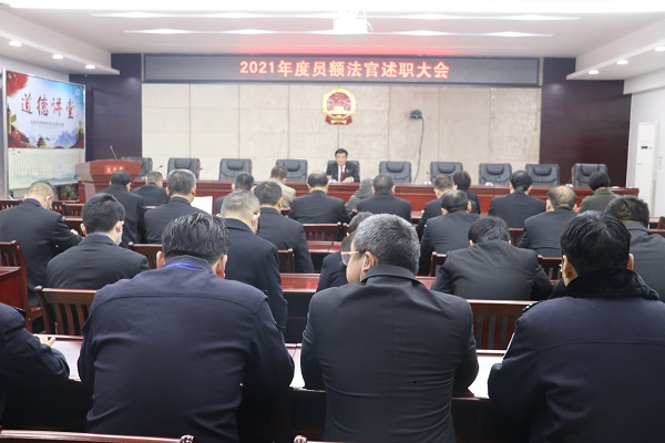 1月15日,湖南岳阳市云溪区人民法院召开2021年度法官评议大会,区人大常委会副主任叶小平、区人大司法监察委员会主任周罗辉、区纪委驻政法委纪检组长林建军、副组长胡重香参加会议,区法院专职委员杨大伟主持会议,全体干警参会。