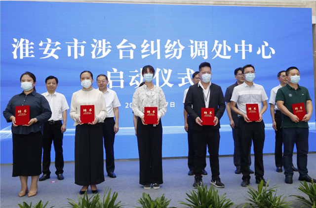 启动仪式前,召开了新闻发布会,向与会媒体记者和人大代表通报了全市涉台商台企纠纷案件集中管辖暨调处中心成立相关情况。会上,播放了涉台商台企纠纷调处工作宣传片,与会相关领导向特邀调解员、联络员颁发聘书等。会后,相关人员先后观摩了经开区人民法院涉台诉讼服务窗口和涉台商台企纠纷调处中心等现场,听取了“无讼淮安·一码解纷”智调平台以及涉台纠纷在线调解、立案等情况介绍。