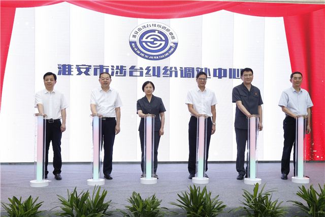 本报讯 9月17日下午,全省首个涉台民商事纠纷调处中心在淮安经开区人民法院正式成立。省高级人民法院党组成员、副院长刘嫒珍,省台办副主任孙继兵,淮安市委常委、政法委书记赵洪权,淮安中院党组书记、院长章润,经开区党工委书记徐子佳,淮安市台办主任周海滨参加启动仪式并共同为该中心正式启动揭牌。
