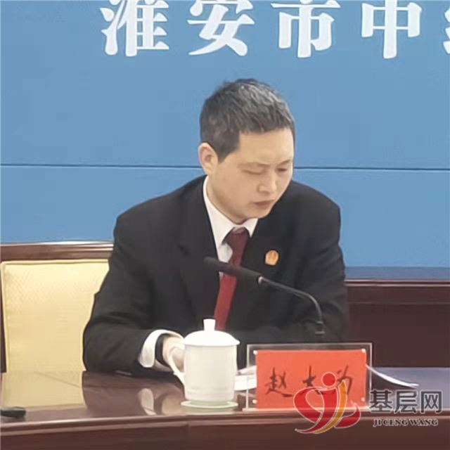 淮安法院宣传处副处长赵大为主持新闻发布会。