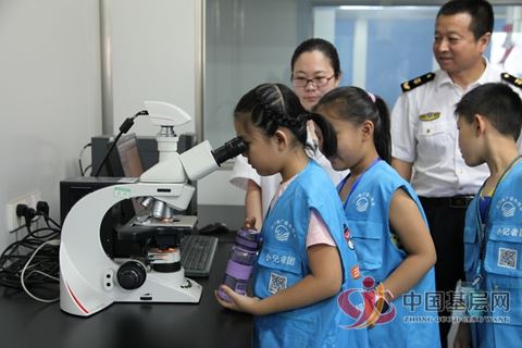 当天,“小记者”们首先观看了食品安全教育短片,并饶有兴趣地参观了食品理化检测室,对农兽药残留及食品添加剂检测室和高效液相色谱串联质谱仪、气相色谱串联质谱仪等大型仪器好奇不已。随后,工作人员现场为“小记者”们上了一堂生动的化学实验课。在工作人员指导下,“小记者”们亲自动手进行了酸碱滴定、制作彩色泡沫等实验,酸碱融合过程中,瞬间神奇莫测的泡沫变化,让“小记者”们目瞪口呆,大呼神奇。在微生物知识讲解现场,他们还用显微镜观察了线虫和细菌,小同学们对“微观世界”景象表现出了浓厚的兴趣。