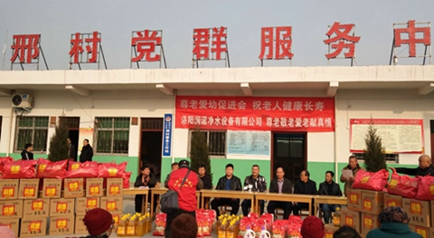 缑氏镇驻村第一书记邵吉军和邢村支书杨战通分别讲话,并对洛阳市尊老爱幼促进会和爱心企业洛阳市润诺净水机有限公司的义举,表示感谢。