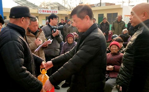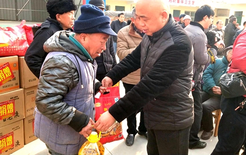 爱心企业洛阳市润诺净水机有限公司在总经理陈奇的带领下,公司20余人携带总价值8万多元的物品来到偃师市缑氏镇邢村村委会大院,为偃师市缑氏镇邢村贫困户354户、五保户11户、80岁以上58人、90岁以上7人发放过冬物品和食用品。