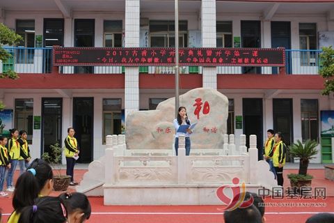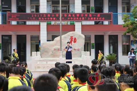 古香小学党支部书记许海燕鼓励少先队员踏踏实实,努力进取,以新的精神面貌迎接新的学期,开始新的征程。