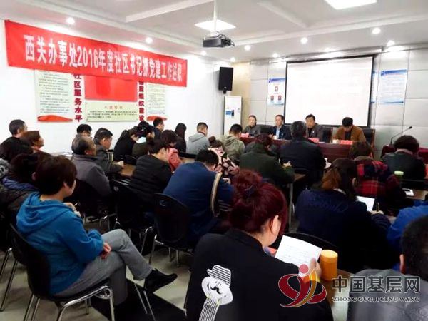 3月29日下午,洛阳市老城区西关办事处组织召开了2016年度社区书记抓党建工作述职会议。办事处党工委副科级以上干部、各基层党组织书记、副书记、网格支部书记以及基层党支部的评议党员代表参加了会议,区委组织部副部长蔡宜恺和大学生村官办主任孙亚楠到会指导工作。