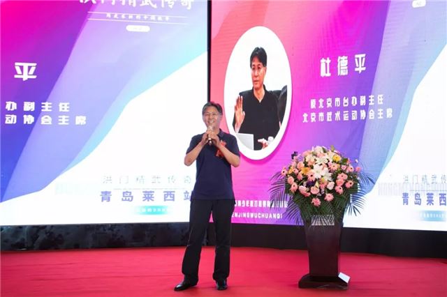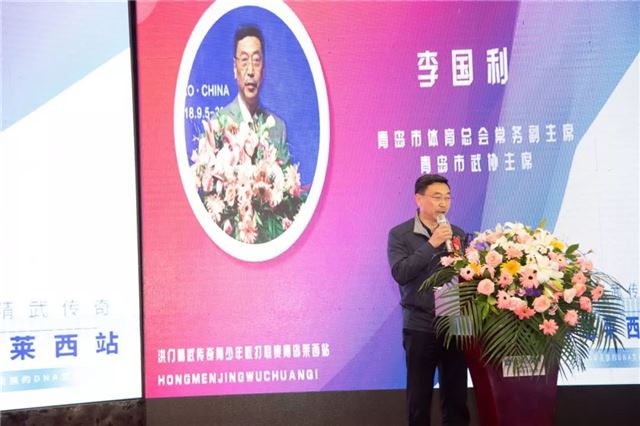 青岛市体育总会常务副主席、青岛市武协主席李国利先生在致辞中讲道:“中华武术,源远流长,它是中华民族自强不息、刚直不阿的象征,是中华文化的瑰宝。青岛是一个与武结缘、具有悠久武术传统的城市,民间习武的风气兴起于十四世纪明朝在此驻军设防,抵御沿海倭寇侵扰。近代以来,青岛武术取得了辉煌的成绩。近年来,随着全民健身上升为国家战略,从政府到民间,从乡村到校园,练武习武在我市蔚然成风,武术普及不断取得新突破,各类武术赛事呈百花齐放、百家争鸣的局面。此次洪门精武传奇世界青少年散打联赛落户青岛市莱西市,是对青岛在全国武术领域影响力的传承。相信赛事的举办必将有力地弘扬以武术为代表的中国传统文化,为促进洪门武术走向世界,维护民族团结发挥积极作用,为建设健康中国做出新的、更大的贡献。”