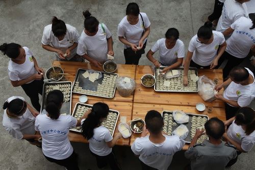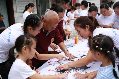 活动结束后,老师为老人们包水饺,和小朋友陪老人们进晚餐。为了表达对福利院老人们幸福安康、生活美好的祝福,老师和小朋友一起动手,用浓墨在纸上绘制了一幅梅花图案送给了院里老人。教师节慰问福利院老人,老人们激动的热泪盈眶,高兴的合不拢嘴,连声说:“谢谢!”