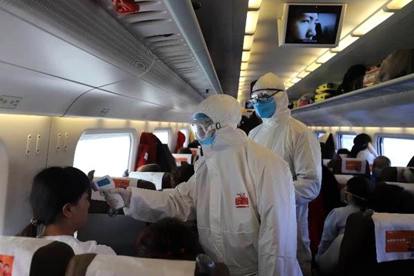 1月28日下午19时,哈密市公安局特警支队特战大队三中队指导员房冬冬与战友检查的是由南宁开往乌鲁木齐的火车。从柳园火车站上车到哈密火车站下车3个小时的时间里,房冬冬要与他的3名战友完成500多名旅客的体温检测、来源地、目的地调查,并对疑似发热患者或重点疫区籍旅客及在重点疫区停留中转的旅客,一律进行医学隔离观察。