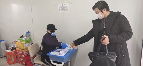 志愿者凌滕辉介绍:这个防控点有八位志愿者,我白班负责登记外来返京、来访人员,因为有公交车通过,执勤工作压力很大,排队车多大家就一起协助登记、测体温、消毒,崔书记及村干部不定时往返防控点尽职尽责检查防控疫情落实工作。