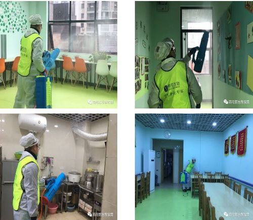 本网讯:3月30日上午,湖南熙芬生物工程有限公司的工作人员来到雨花怡智,免费为雨花怡智进行全面消毒,他们背着水种子工程消毒液、手执消毒弥雾机,对机构地面、墙角、桌椅进行全方位的消毒工作,不放过一个死角,为机构复工复学做好防疫准备工作的第一步。