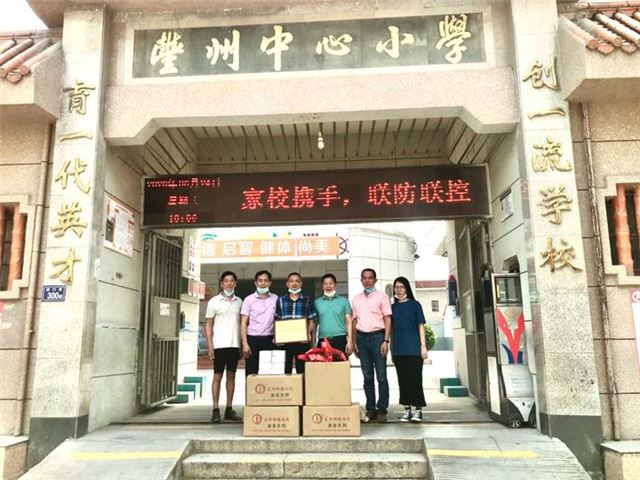 端午节是我国一个纪念先贤、避瘟驱毒、祈求健康的民俗佳节。为向教职工表达节日祝福,慰问节日驻守岗位的老师们,当天上午,烈日高照,慰问团一行人来到学校,将300个医用口罩和80份端午礼品粽交到了丰州中心小学校长黄金泉的手中。黄校长代表学校对捐赠单位的善举表示感谢。国家级高级工艺美术师黄忠聘说:“在端午佳节来临之际,我们怀着崇敬和祝福的心情,同各位爱心人士一起来看望慰问学校全体老师,向辛勤的园丁们道声‘你们辛苦了’!特别是抗疫这段时间,为保障这些‘祖国花朵’的生命健康安全和课程学习不落下,你们付出了太多心血。感谢你们!”