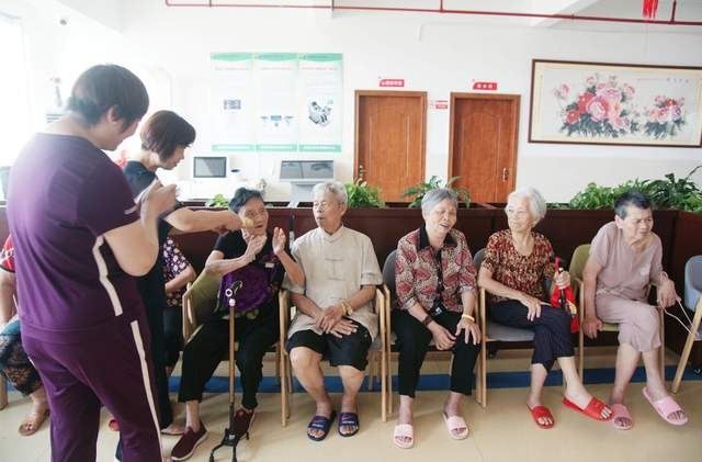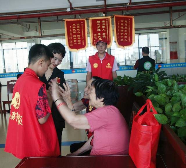 接着,越来越多的老人接过话筒,有的唱革命歌曲,有的唱地方歌曲南音片段,有的随着音乐节拍跳起舞来,就连坐在轮椅上的老人也跟着念唱、喝彩、鼓掌。整个现场,其兴勃勃,其乐融融。志愿者就忙着给老人们端茶倒水、剥粽子、递水果、搀扶走动。