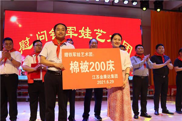 活动中,江苏金康达集团董事长姜滢表示,看望慰问铁军娃艺术团一直是自己的心愿。此次由县关工委安排与山东齐融集团一起开展爱心捐赠活动更有意义。感谢山东朋友对盱眙孩子的关爱,也希望孩子们发扬红星照我去战斗的精神,将铁军娃艺术团办成全省有影响,全国有亮点的队伍,成为盱眙的又一个品牌,又一张名片。