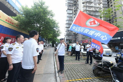 中国国际救援中心康海秀主席为出征人员授旗