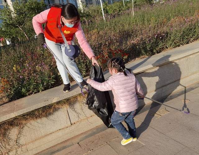 在活动现场,碧桂园志愿者们身穿红马甲,一手执垃圾钳,一手拎垃圾袋,认真地捡拾江边沿路被丢弃的烟蒂、碎纸屑、塑料袋、瓜皮果壳等生活垃圾。同时,志愿者们向周边群众传播宣传爱护环境的理念,引导小朋友一起参与净滩活动,养成良好的生活习惯。经过志愿者们的地毯式搜索,沿途道路、绿化带的垃圾被拾捡得干干净净,每个志愿者的垃圾袋中都是“战果累累”。