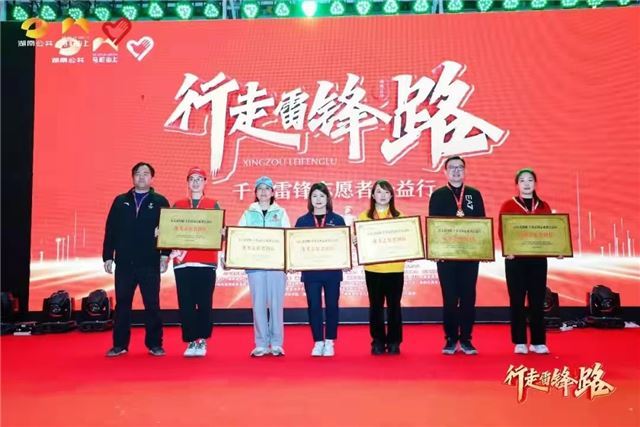 为树立典范,激励先进,积极培育和践行社会主义核心价值观,大力弘扬雷锋精神,传播志愿服务理念,湖南广播电视台公共频道和共青团长沙市委、长沙市青年志愿者联合会在终点砂之船(长沙)奥莱举办了志愿服务个人及团队颁奖仪式,对本次行走雷锋路活动中表现踊跃的个人和单位、对在长沙市大学生参与社会治理志愿服务中表现突出的项目和组织进行表彰和颁奖。