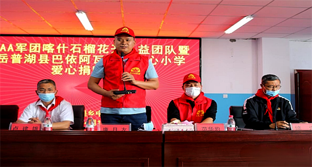 校长古力布斯坦·吾布力同志接受此次捐赠,并代表全校师生向“喀什石榴花开爱心公益团队”及其全体干部职工表达了衷心的感谢。古校长说:“感谢你们对我校发展的支持和关心,你们的到来让我们倍感温暖,我们一定会励精图治,严谨办学,努力把我校办成一所社会认可、领导满意、家长拥护、学生成才的学校。” 古校长也借此机会要求全体教师:上好每一堂课,做好每一件事,教好每一个学生,培养出更多对社会有用之才。无愧于社会的重托,无愧于人民的期望。要求全体学生:要把滴水之恩,化作自强不息、奋发学习的动力,用优异的成绩,回报父母的养育之恩,老师的培育之恩,社会的关爱之情。
