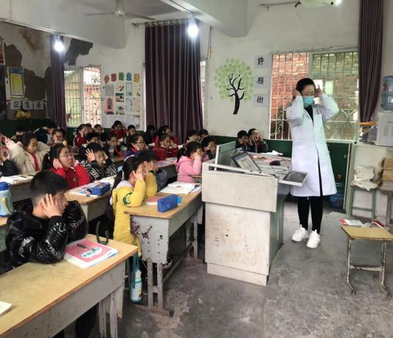 此次爱耳日活动主题为“科学爱耳护耳,实现主动健康”。结合主题,制作了相关PPT,大力宣讲最基本的耳科保健知识,强调一级预防的重要性和必要性。在活动现场,卫生院党支部党员利用多媒体播放视频、展示PPT进行知识宣讲,然后发放宣传单和做护耳操加强师生的记忆;培训后,部分班主任也利用班会时间,对学生进行爱耳日主题宣传。在院门口利用LED灯循环播放爱耳日宣传教育活动宣传口号、发放宣传单等。
