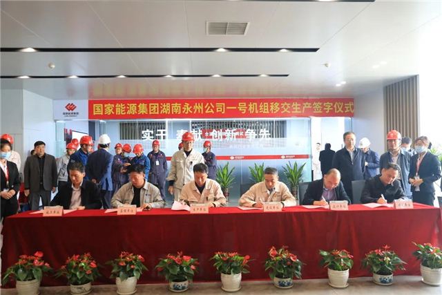 樊希林宣布国家能源集团神华永州发电有限公司1号机组通过168小时试运,移交生产。他指出,国能永州电厂一号机组顺利通过168小时试运,各项环保、经济、技术指标均达到设计要求,标志着湖南省首台百万千瓦发电机组投产取得圆满成功。他希望国能永州电厂全体干部员工、各参建单位以1号机组高标准投产为契机,积极响应“社会主义是干出来的”伟大号召,充分发挥党的领导核心作用,坚持抓好安全生产管理,强化指标对标提升,确保双机投产后实现长周期安全、稳定经济运行,为当前能源保供做出贡献。