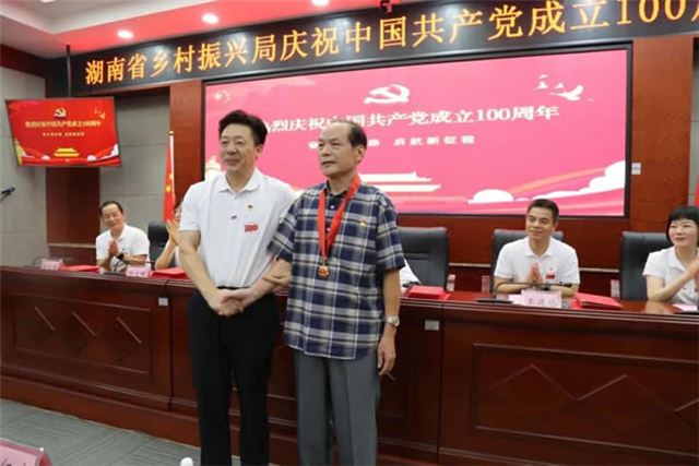 大会在庄严的《义勇军进行曲》中拉开序幕, 全体党员起立,共唱国歌。局党组成员、副局长,一级巡视员黎仁寅致辞。黎仁寅指出,百年来,中国共产党一路走来,历经千辛万苦,披荆斩棘,谱写了气壮山河、威武雄壮的壮丽诗篇。通过事实证明了只有在党的领导下,国家才能强盛,民族才能复兴,人民才能幸福。脱贫攻坚作为百年党史的重要组成部分,是一代又一代“扶贫人”不惧艰辛、忘我牺牲的责任担当,是以热血赴使命、以行动践初心的生动展现。如今在乡村振兴的新征程上,我们要紧密团结在以习近平同志为核心的党中央周围,以更加昂扬的斗志、更加务实的作风、更加有效的行动,接续谱写乡村振兴崭新篇章,为全省实施“三高四新”战略、建设现代化新湖南作出新的更大贡献!