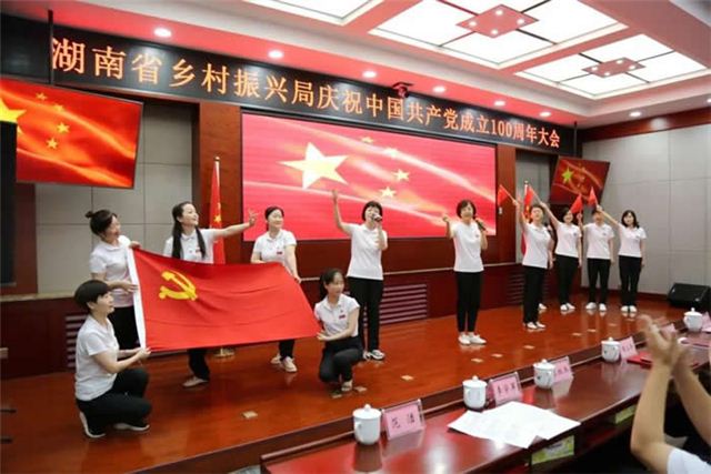 伴随着国际歌的嘹亮歌声,省乡村振兴局庆祝中国共产党成立100周年大会圆满落幕。大家纷纷表示,将继续用心用情践行初心和使命,以更加昂扬的斗志、更加务实的作风投入到乡村振兴工作当中去,向着实现第二个百年奋斗目标奋勇前进,奋力谱写全面建设社会主义现代化国家的湖南篇章!