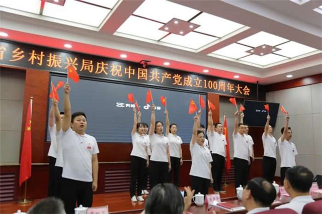 为热烈庆祝中国共产党成立100周年,进一步弘扬正气、激励广大共产党员在乡村振兴工作中奋发有为、建功立业,7月1日下午,省乡村振兴局隆重召开庆祝中国共产党成立100周年大会。所有在家局领导和全体党员干部共90余人参加会议。