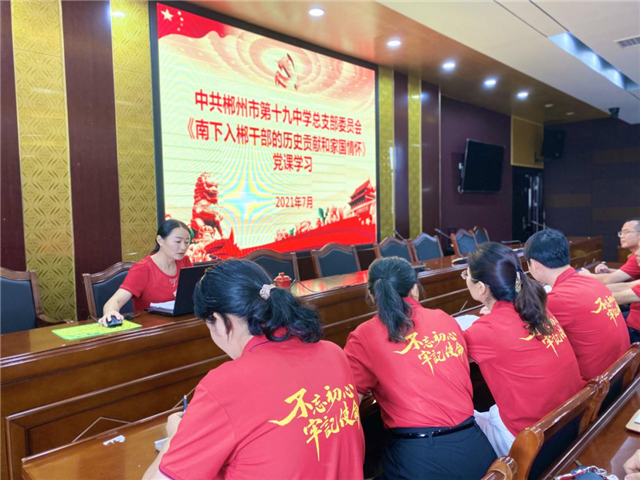 为庆祝中国共产党成立100周年,深入开展党史学习教育,继承和发扬党的光荣传统和优良作风,增强我校党组织的凝聚力和战斗力,7月1日下午,郴州市第十九中学党总支开展了庆建党百年主题活动。我校全体党员教师参加了此次活动。