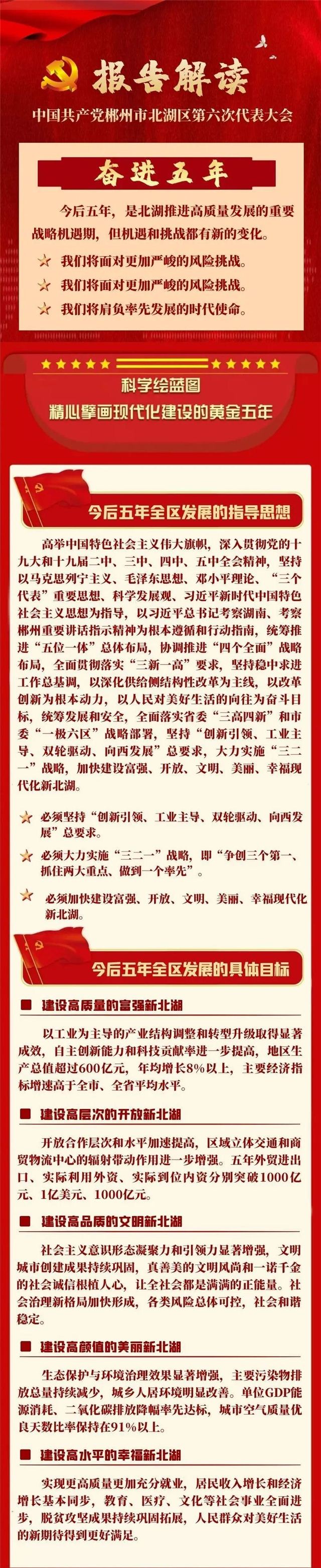 7月29日,中国共产党郴州市北湖区第六次代表大会在区人民会堂开幕。区委书记罗成辉代表中共北湖区第五届委员会向大会作了题为《干在实处走在前列 为加快建设现代化新北湖努力奋斗》的报告。报告全面总结回顾过去五年的工作,确定了今后五年全区工作的指导思想、战略定位、主要目标和重点任务,为北湖区高质量发展擘画出了宏伟蓝图,凝聚起广大干部群众的智慧和力量,意义重大,影响深远,为我区今后工作指明了方向。北湖区融媒体中心特开设专栏,全面解读党代会报告。