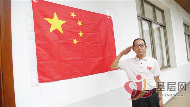西塘街社区红旺小区党支部廖书记正在敬礼