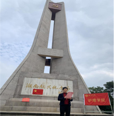 活动中,护理学院院长何咏梅提出在场的党员同志,要牢记使命、不忘初心,强调此次主题党日活动既是一次党性教育之行,也是一次净化心灵、境界提升之旅。教职工党员代表以及学生代表在发言中都表示通过此次主题党日活动,大家更加清晰地认识到牢记革命先辈艰苦奋斗的精神,要从共产党人的精谱系中学习,身为一名护理人员应当将政治坚定、技术优良、无私奉献和救死扶伤的红医精神铭记于心。护理学院党总支书记彭延强指出在今后的生活工作中发挥好党员先锋模范带头作用,为护理学院发展增砖添瓦。在活动中,彭延强带领老党员们在威严的纪念塔前重温入党誓词,带领新党员们在鲜红的党旗下进行庄严宣誓。最后一行人满怀敬仰和崇敬的心情参观了湘南起义纪念馆,接受红色文化熏陶,传承红色基因,追寻革命烈士血与火的足迹,深湎于先辈们百折不饶、不怕牺牲的精神。
