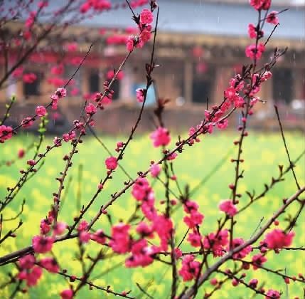 岛上桃花含苞欲放。