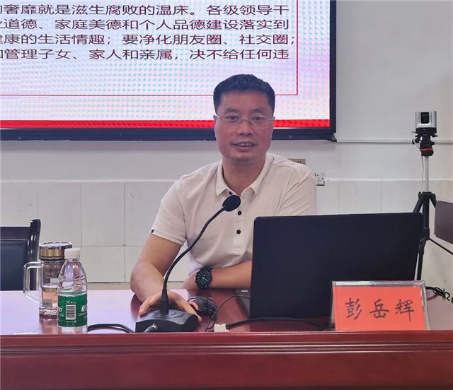 彭岳辉指出,要坚守廉洁根本,做到洁身自好、清廉自守。要遏制侥幸心态,摒弃投机侥幸思想;遏制纵欲心态,摒弃纵欲享乐思想,时刻保持头脑清醒。要树立正确的世界观、人生观、价值观,以强烈的责任感、使命感、紧迫感,激发干事创业的良好精神状态。要学会谋事、谋道、谋略,懂得知恩、感恩、报恩,要筑牢思想防线,守住做人底线,不踩政策法规红线。
