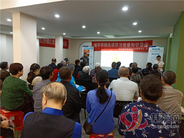 居民认真观看健康知识讲座