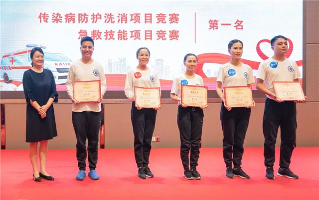 此次急救技能大比武紧密结合当前常态化疫情防控和院前急救工作实际,分为传染病防护洗消和急救技能两个项目,每项目均包含理论知识和技能操作两部分。市第一医院5名选手不惧挑战,全力以赴,以过硬的专业技能,良好的心理素质,一路“过关斩将”,勇夺佳绩。在荣获团体特等奖的基础上,5名选手均获得单项第一名,被市总工会授予“长沙市五一劳动奖章”荣誉称号。