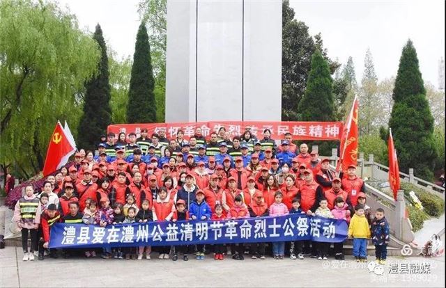 4月4日,爱在澧州公益事业发展中心携手澧县蓝天救援队等机构近两百多名志愿者,在常德市澧县兰江公园革命烈士纪念碑前举行革命烈士公祭活动。
