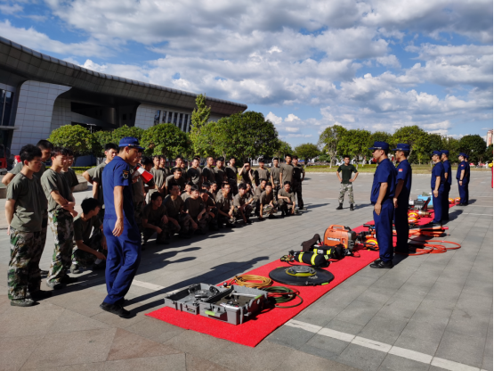 讲座结束后,开展了应急疏散逃生演练。随着警报声响起,周围浓烟四起,新生们按照逃生要求,有序撤离,迅速抵达安全区域。