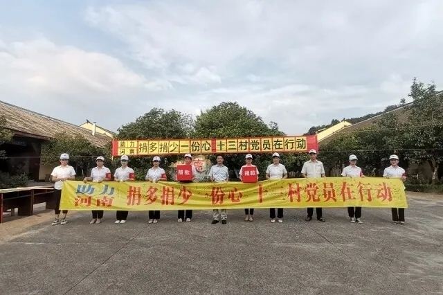 河南一场大雨,牵动着全国人民的心。7月24日下午,在岳阳临湘市羊楼司镇,湖南省十三村食品有限公司110多名党员、工人自发集结,捐款51350元,与河南人民共渡难关。