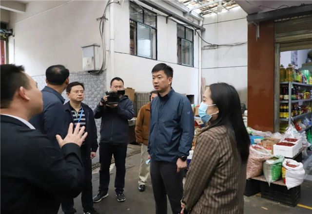 走进挂口菜市场,陈淼随机抽查了市场内部分仓库的环境卫生,以及市场周边配套设施、道路占道经营整治等情况。陈淼要求,要深入开展市场周边环境整治,形成联动协作的监管机制,构建齐抓共管工作格局,实现全区农贸市场管理常态长效。针对抽查中发现的卫生问题,陈淼强调,要深入开展文明创建工作,不断提升市场专业化管理水平,完善和改造公共厕所、垃圾处理、冷链仓库等设施,为人民群众提供一个安全、卫生、文明、整齐的购物环境。