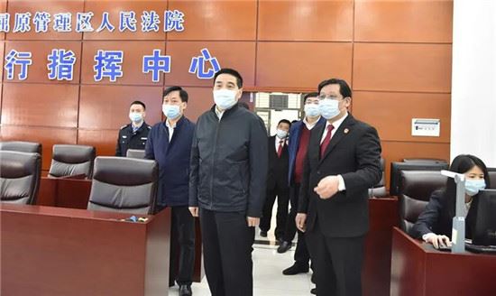 在临湘法院执行指挥中心,田立文院长通过执行指挥系统与在外执行和一线抗疫干警进行连线,询问了目前工作开展情况,并叮嘱干警在特殊时期要注意自身防护和安全。
