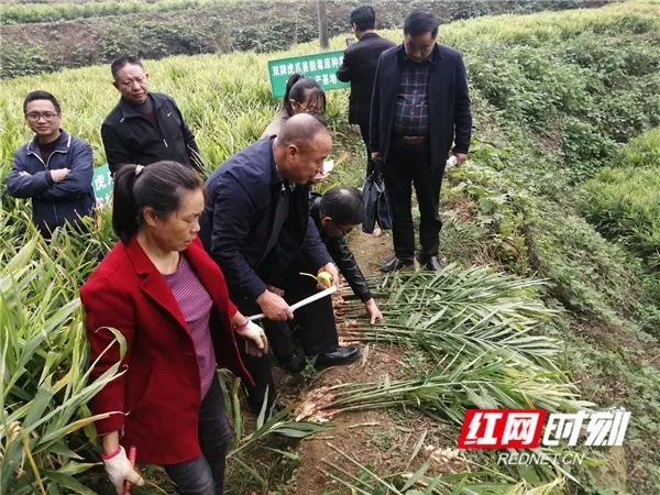 10月28日,永州市科技局组织中国农科院衡阳红壤实验站、湖南农业大学、永州市农业科学研究所有关专家,在双牌县泷泊镇崔家村“双牌虎爪姜连作崔家村试验地”实地测产,专家组在丘块中分别取样3个点,统计各样点蔸数、测量株行距、鲜姜重量,得出测产数据。