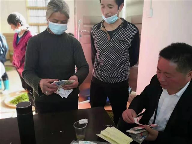 梁秀花今年59岁,是土生土长的本村人,她和老伴是公司的“老伙计”了。清早六点就上了山,趁早采回的茶叶品质更好,这不,一过完称结完账,手里揣上了一打钞票。
