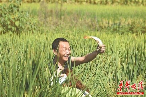 “我们是生态种养,一水两用,一田多收。”谢久好乐哈哈地告诉记者,稻田养鱼,鱼吃昆虫,减少了病虫害,粪便还田,全程不施化肥,不打农药,降低了成本,养出的鱼生态环保,一亩田能收50公斤左右稻花鱼,每公斤能卖50元,种出的稻米香,价格高,加上种一季油菜的收入,一亩田的纯收入能达到6000元以上。