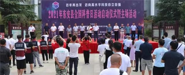 为搞好全国科普日活动,8月下旬,以东安县全民科学素质领导小组的名义成立了2021年全国科普日活动领导小组,并组建了专门工作班子。科普日活动启动仪式上,市科协党组成员、副主席黄世轩出席活动并宣布活动启动,东安县委常委、宣传部长谢梅芳出席并致辞,县政协副主席唐月程,县老科协会长李谋献,县老科协常务副会长邓明良等有关领导参加活动,并分别向获得第26届东安县青少年科技创新大赛优秀组织奖的耀祥中学、白牙市镇一小等6个单位,2020年下期东安县教育系统科普工作优秀组织单位的舜德学校、崇德学校、东安一中等9个学校颁发了荣誉牌匾,县科协向乡村振兴示范创建村芦洪市镇赵家井村赠送了1000册科普图书。县科协、县老科协、县教育局、县农业农村局、县卫生健康局、县应急管理局、县市场监督管理局、芦洪市镇政府等单位负责人及200余名各界人士参加启动仪式。