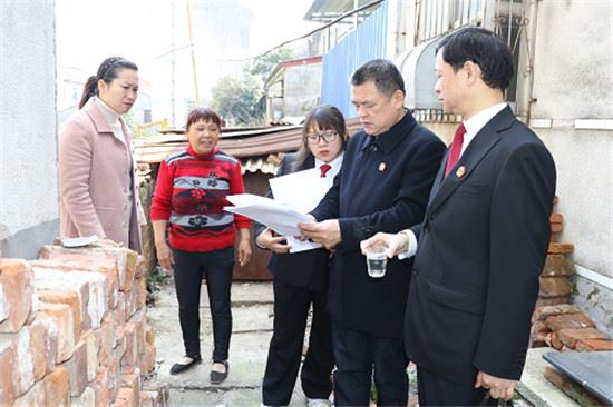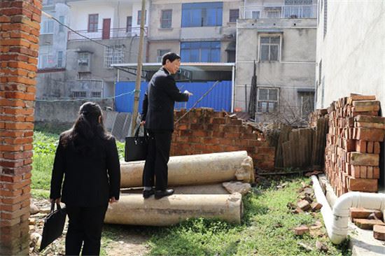 近日,湖南省岳阳市云溪区人民法院民二庭一行在副院长王天保的带领下深入云溪区路口镇某村,对周某诉曹某宅基地一案进行现场调查。