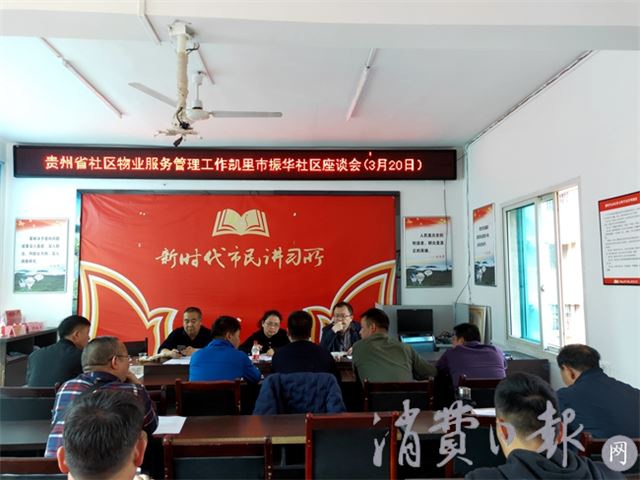 在座谈会现场,围绕凯里市社区物业管理服务的工作现状和实际工作中的做法与经验,凯里市房产局在正确引导和加强规范物业企业市场化和标准化以及小区业主委员会建设等工作方面作了介绍。