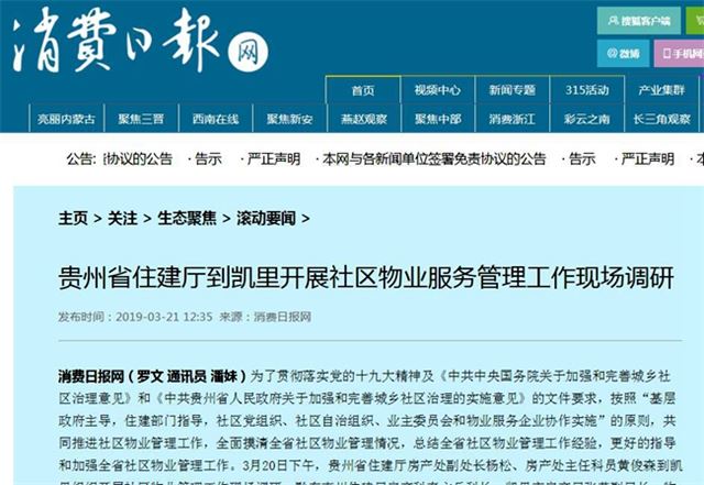 消费日报网(罗文 通讯员 潘妹)为了贯彻落实党的十九大精神及《中共中央国务院关于加强和完善城乡社区治理意见》和《中共贵州省人民政府关于加强和完善城乡社区治理的实施意见》的文件要求,按照“基层政府主导,住建部门指导,社区党组织、社区自治组织、业主委员会和物业服务企业协作实施”的原则,共同推进社区物业管理工作,全面摸清全省社区物业管理情况,总结全省社区物业管理工作经验,更好的指导和加强全省社区物业管理工作。3月20日下午,贵州省住建厅房产处副处长杨松、房产处主任科员黄俊森到凯里组织开展社区物业管理工作现场调研。黔东南州住建局房产科秦主兵科长、凯里市房产局张荣副局长、物管科石先涛科长以及大十字街道、南山社区、洗马河街道振华社区相关负责人、市物业协会和相关小区业主委员会和物业公司负责人等参加了当天的现场调研。